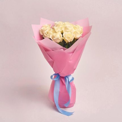 Букет из 17 разноцветных гербер и зелени в дизайнерской коробке “Салли”