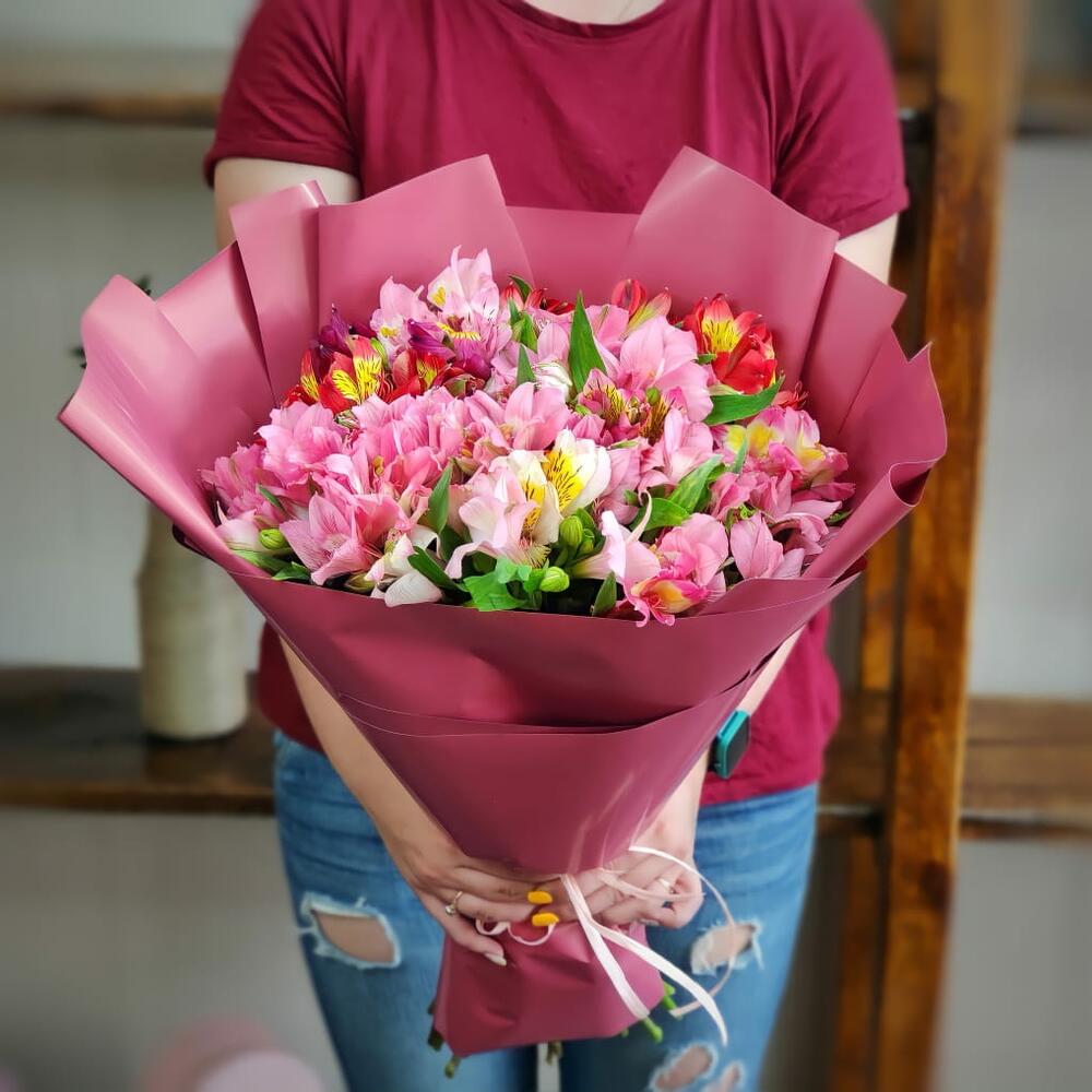 Яркий букет разноцветной альстромерии прекрасный подарок на День Рождение или годовщину свадьбы. Порадуй свою любимую красивым букетом свежих цветов.