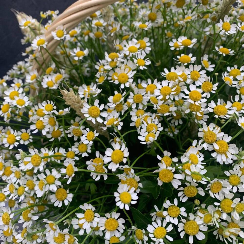 Корзина из ромашки (матрекарии), триникума, зелени «Летнее танго»