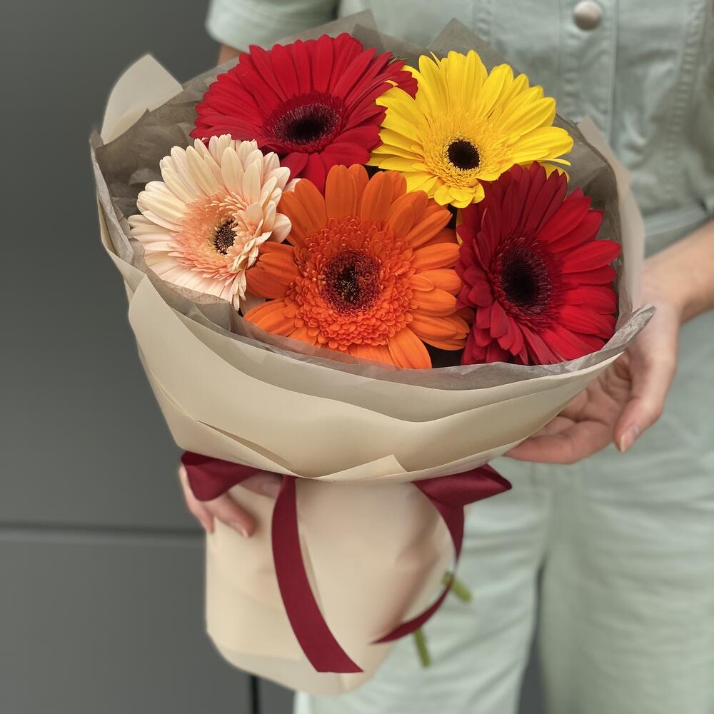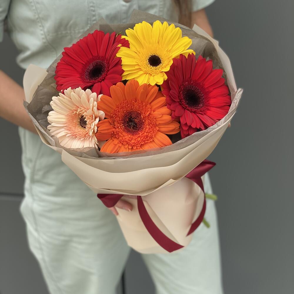 Букет из 5 гербер в оформлении!