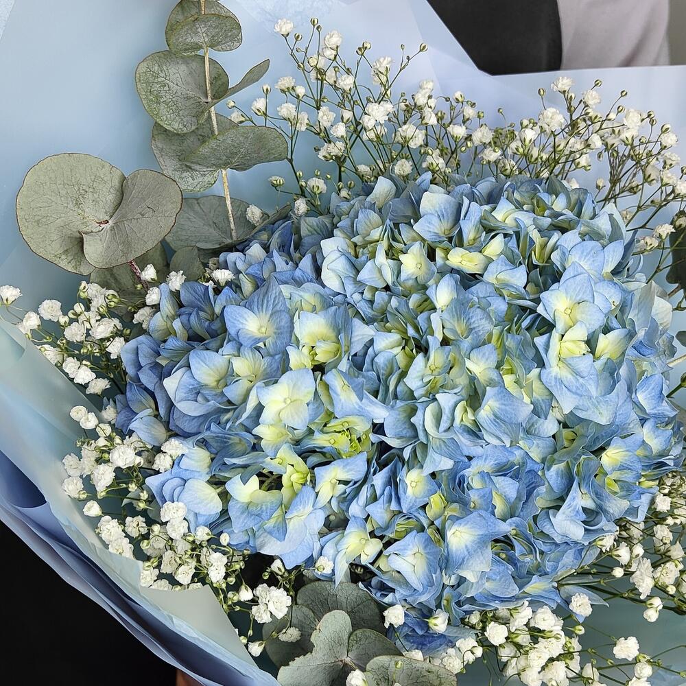 Букет из гортензии, гипсофилы и ароматного эвкалипта