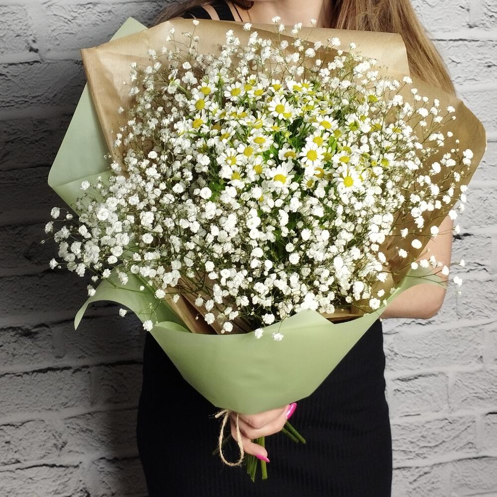 Букет "Ромашки в облаках" ромашки гипсофила