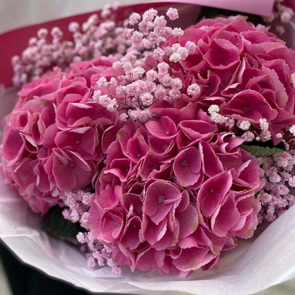 Гипсофила – 3 шт.Гортензия – 3 шт.Лента атласная – 1 шт.Упаковка дизайнерская – 1 шт.