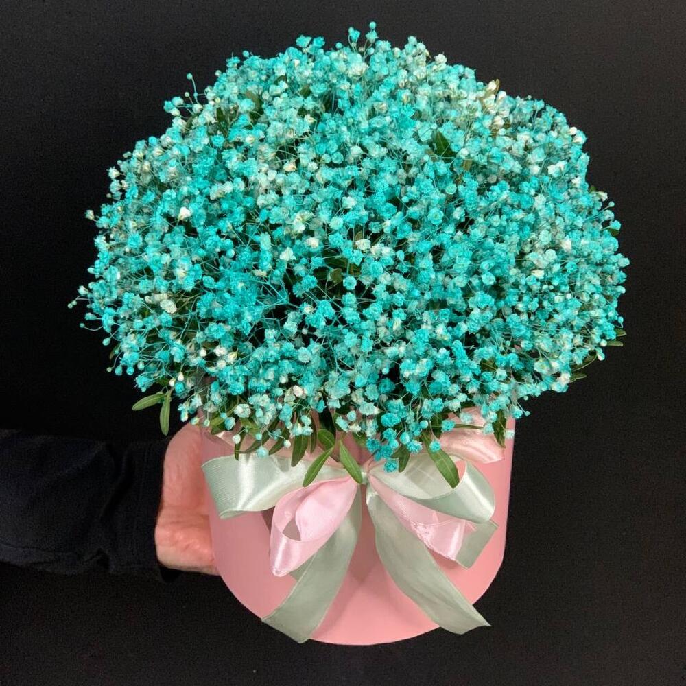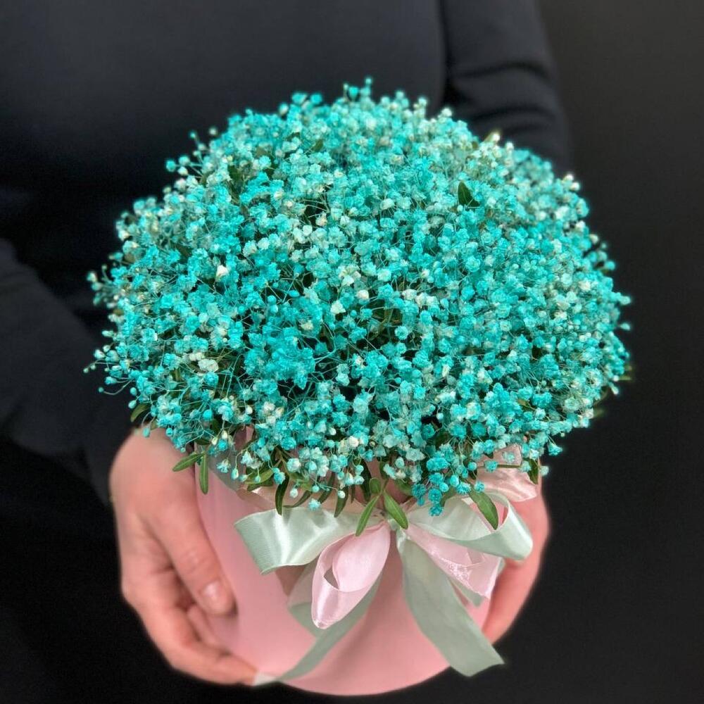 Гипсофила – 5 шт.Коробка шляпная – 1 шт.Лента атласная – 2 шт.Оазис флористический – 1 шт.Фисташка – 3 шт.
