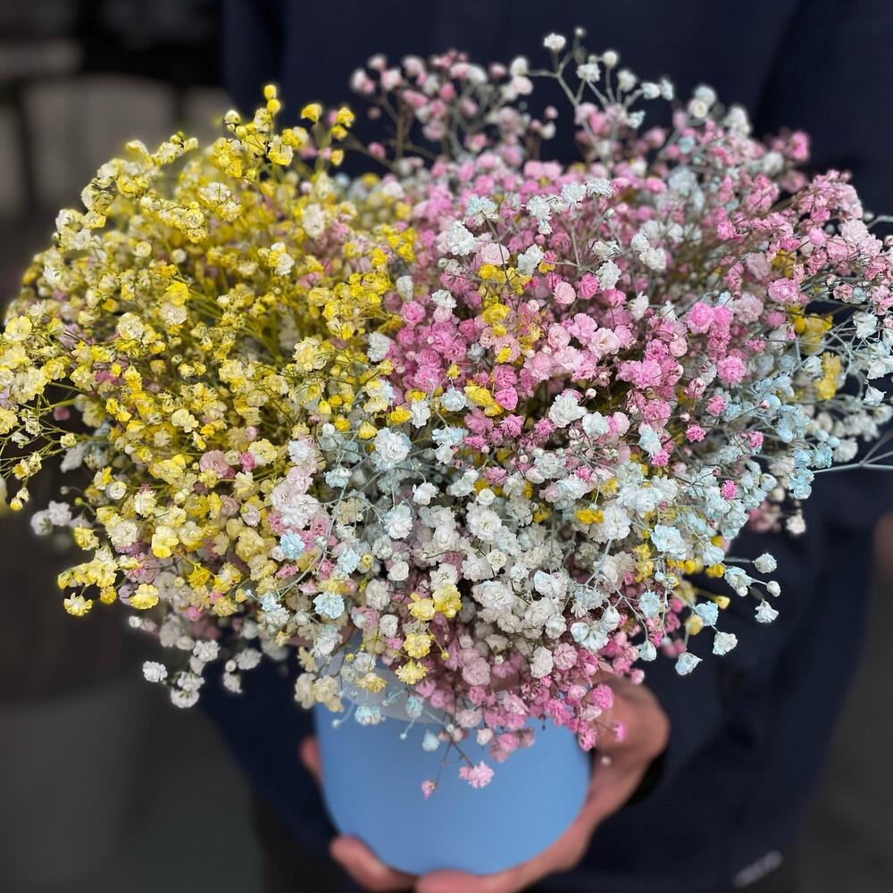Коробочка с разноцветной гипсофилой