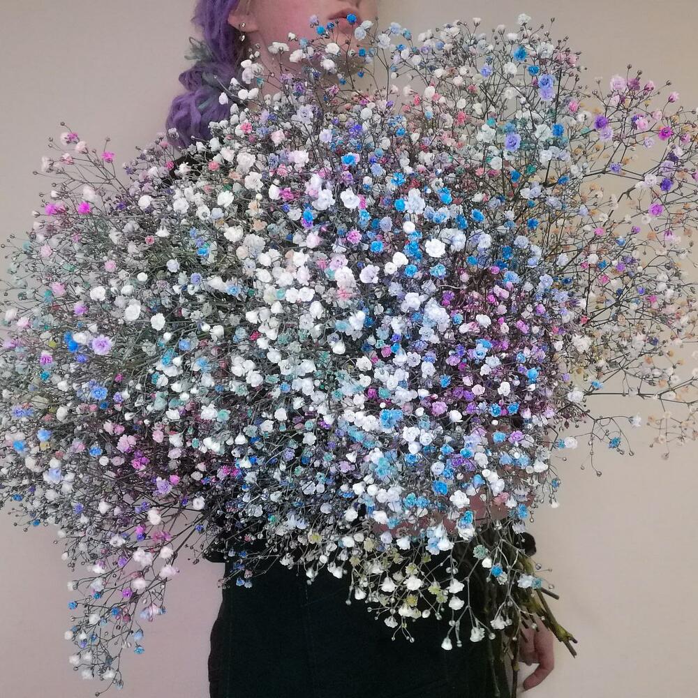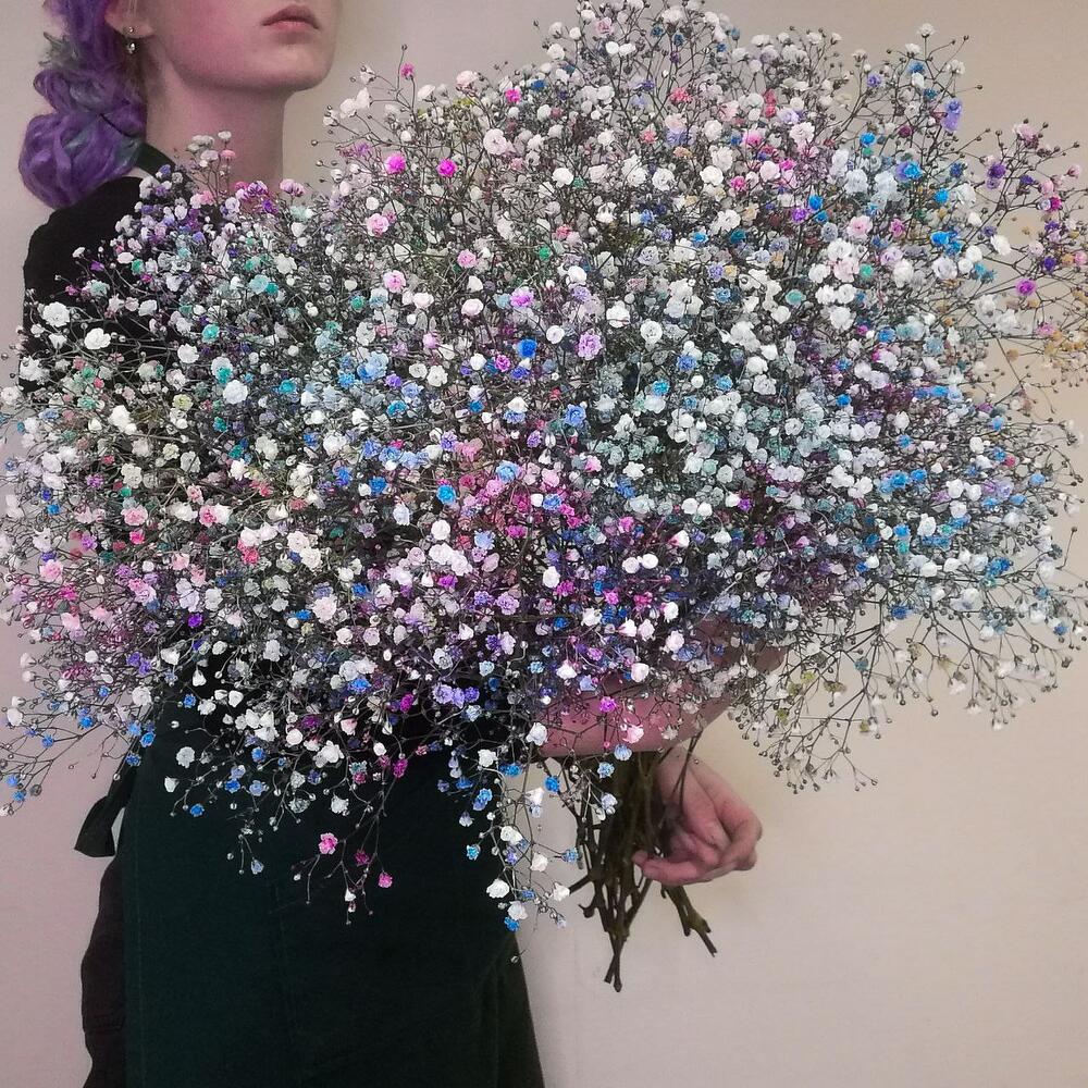Огромный пышный букет яркой радужной гипсофилы несомненно удивит ваших близких!