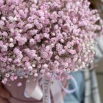 “Сиреневый туман” – композиция из гипсофилы в шляпной коробке