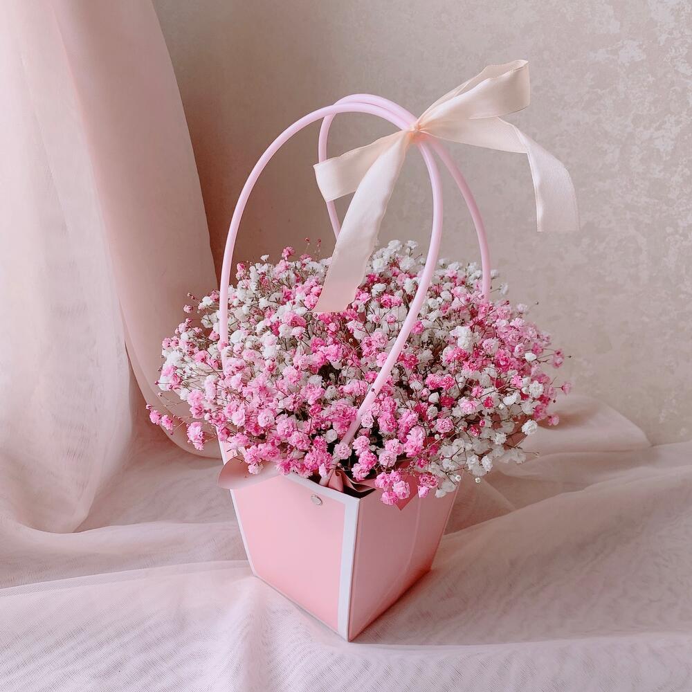 Розовая гипсофила в милой сумочке