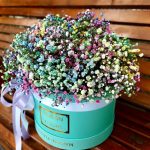 “Сиреневый туман” – композиция из гипсофилы в шляпной коробке