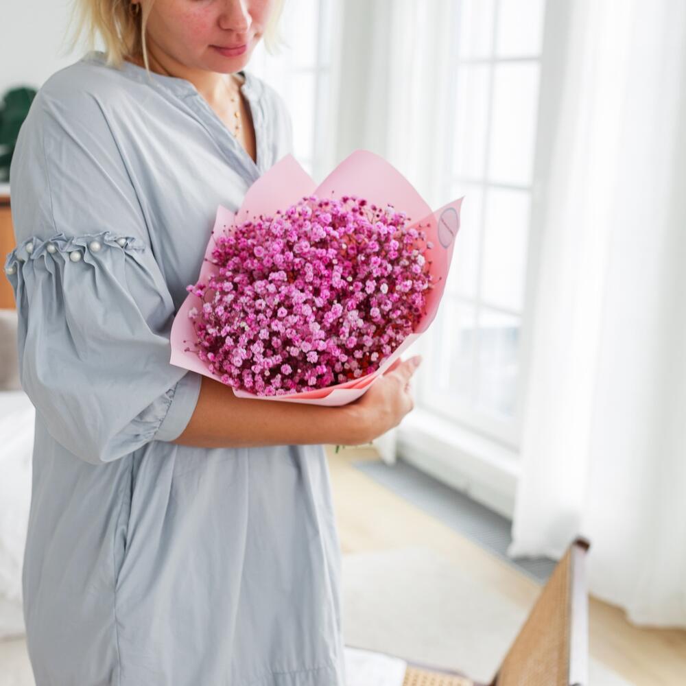 Гипсофила – 5 шт.Пленка корейская – 2 шт.Лента атласная – 1 шт.