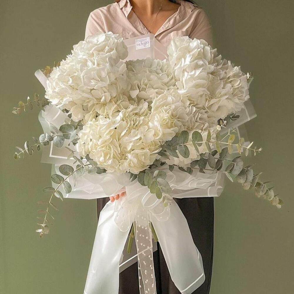 Букет из 5 белоснежных гортензий в стильном оформлении. Заказав букет с доставкой от Da Vinci, Вы скрасите день обладательницы букета и подарите ей незабываемые эмоции.