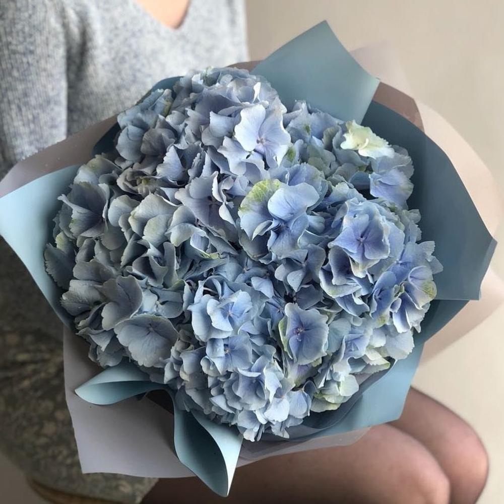 Букет из 5 пудровых голубых гортензий