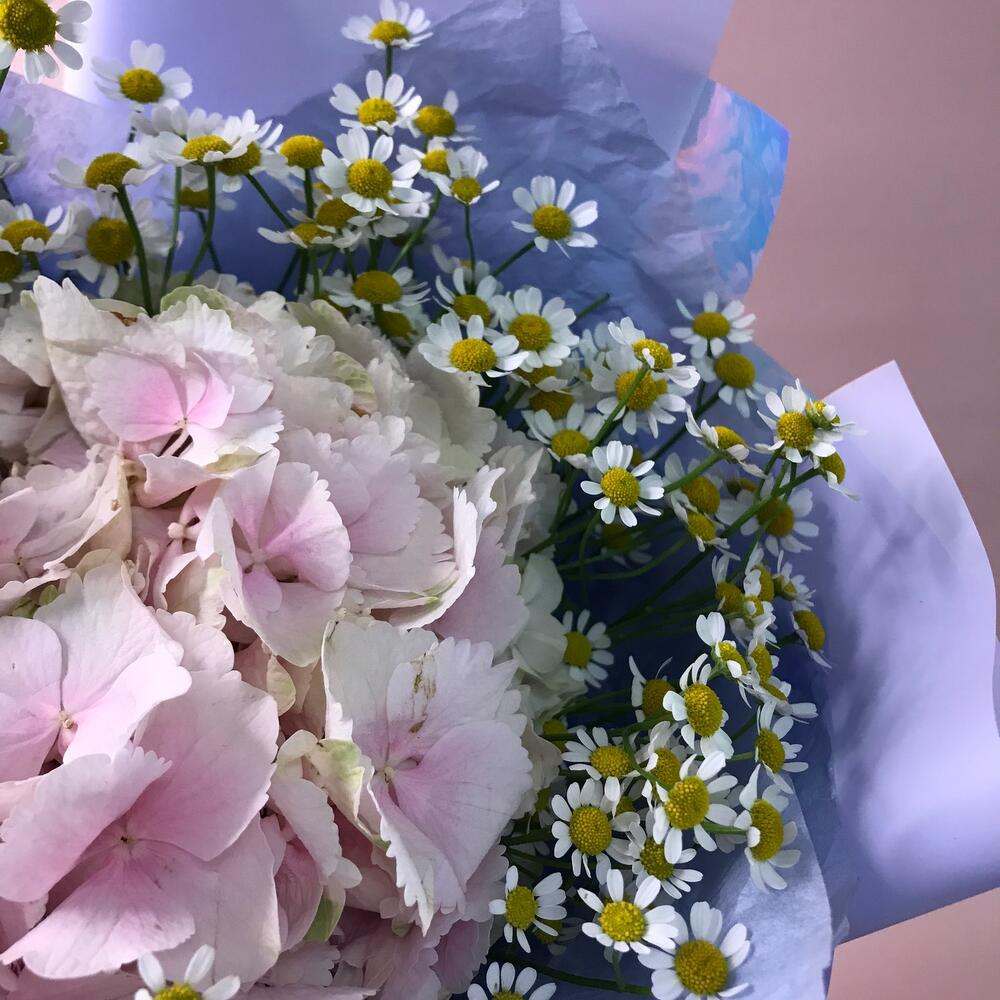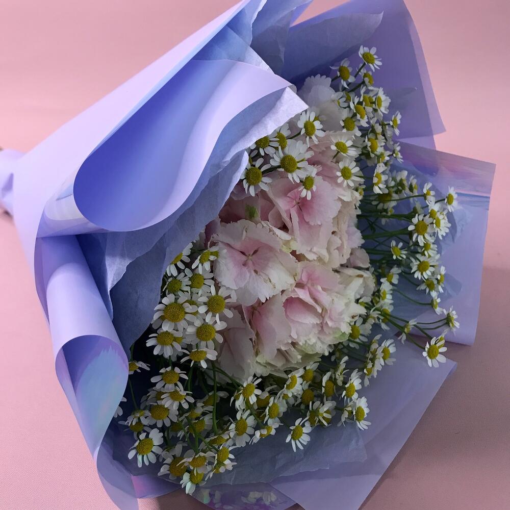 Гортензия – 1 шт.Матрикария – 6 шт.Тишью – 2 шт.Оформление – 1 шт.