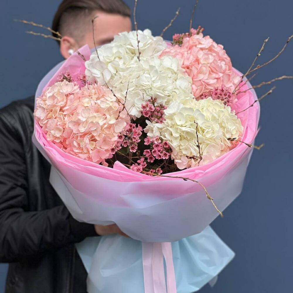 Роскошный классический букет с шикарной гортензией и морем зелени порадует ваших близких:)