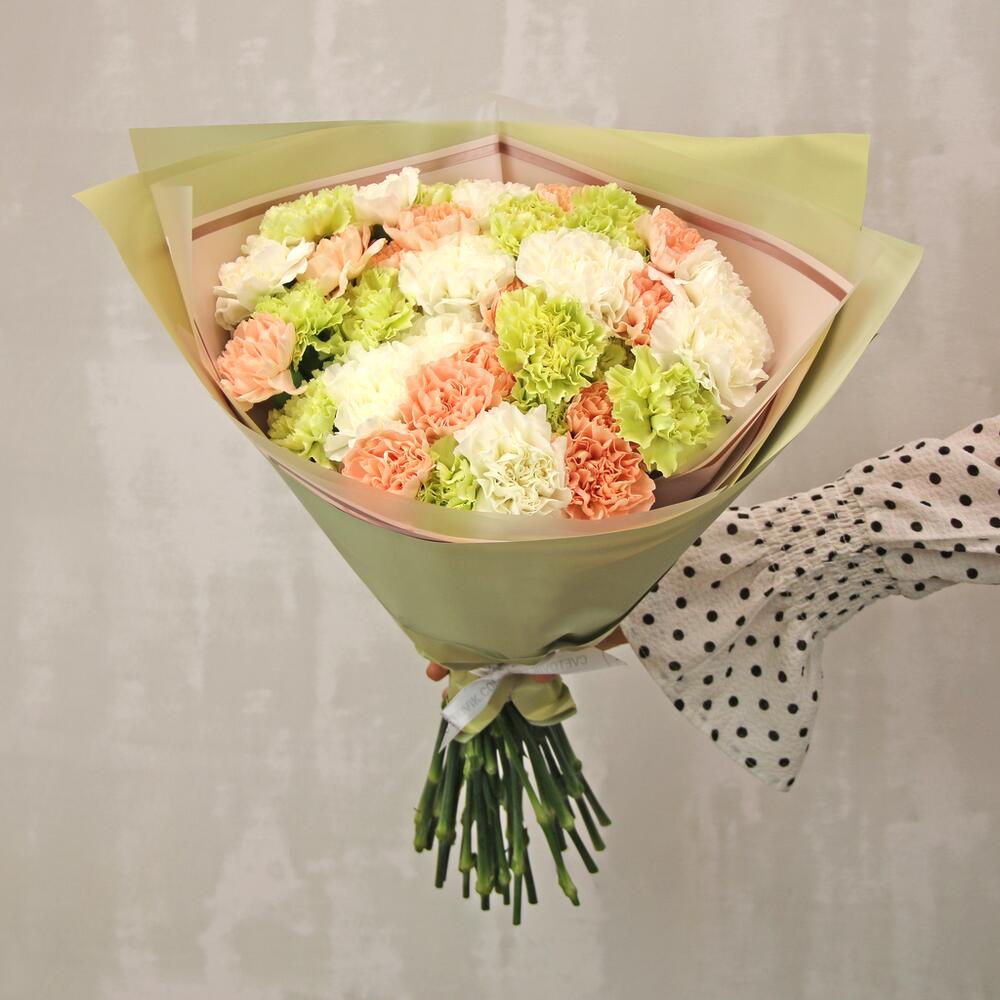 Букет из 35 диантусов (гвоздик) микс в стильной упаковке