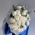 Букет из белых гвоздик и эвкалипт