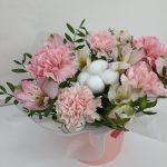 “Атлас☁️” – цветочная композиция с зефиром в деревянном ящике