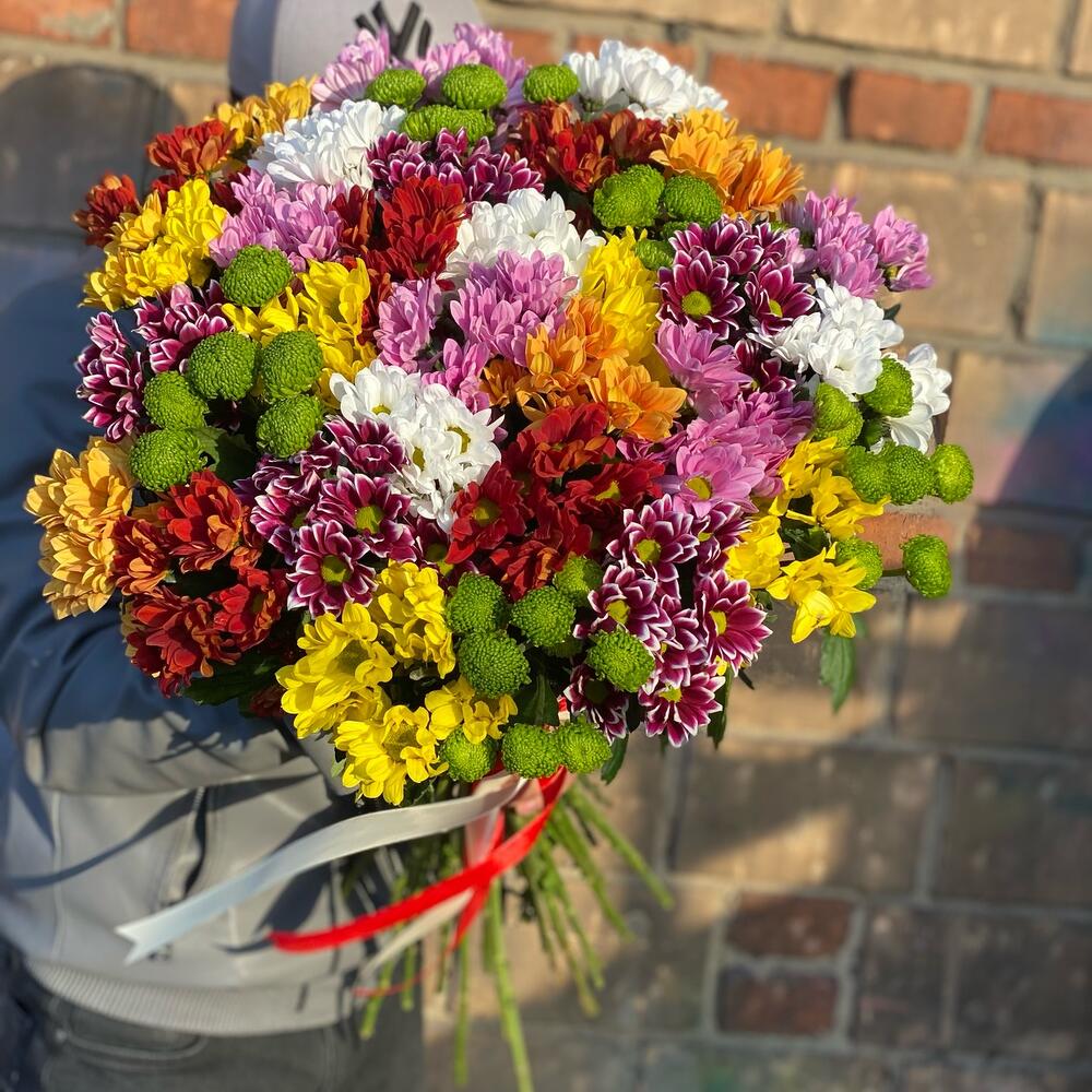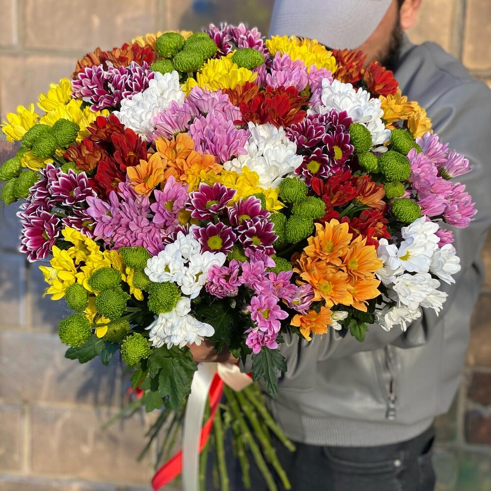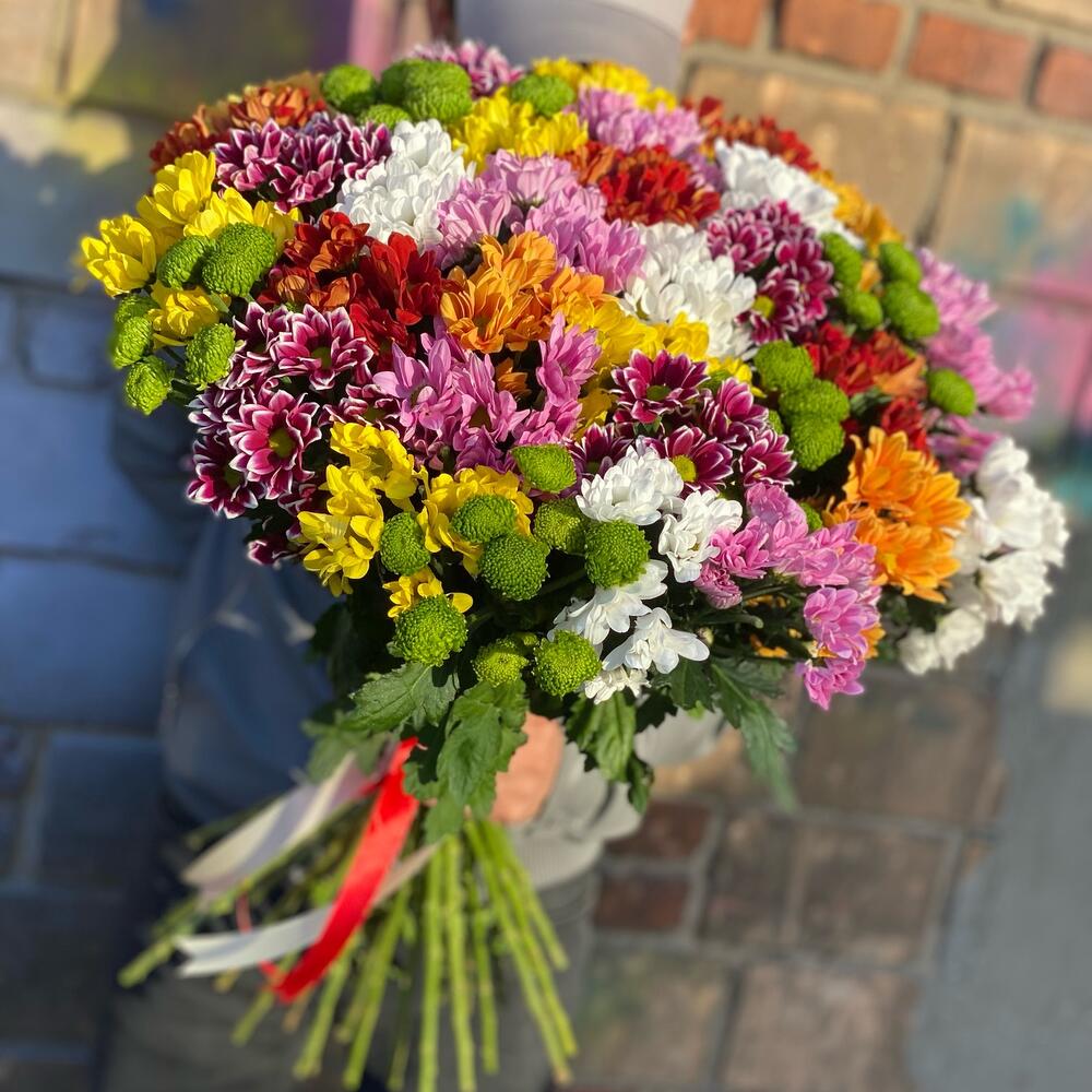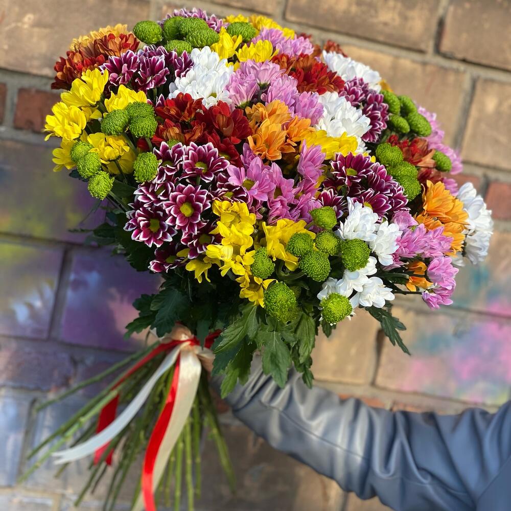 Букет из 35 разноцветных хризантем