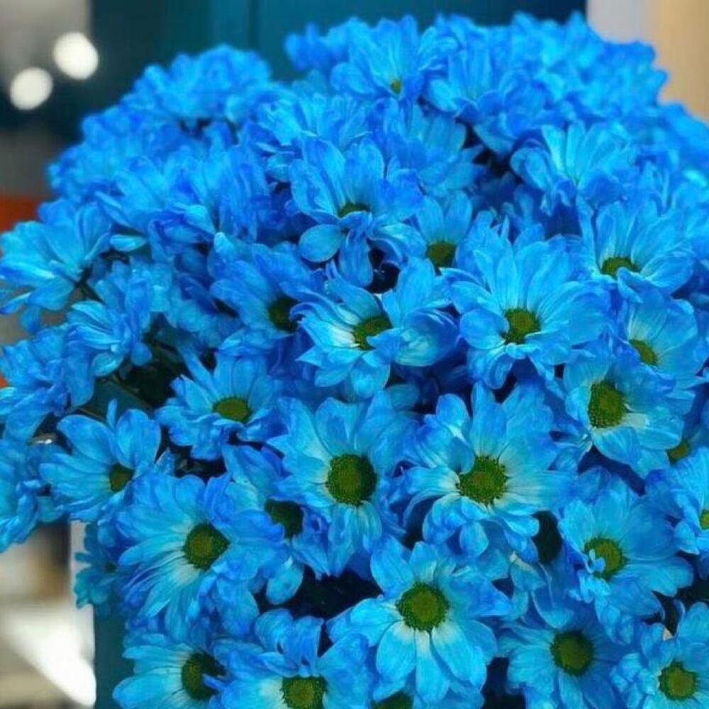 Хризантема голубая – 29 шт.Лента атласная – 2 шт.Открыточка с вашими пожеланиями – 1 шт.хорошее настроение – 100 шт.инструкция по уходу за цветами – 1 шт.коробка переноска – 1 шт.Кризал – 1 шт.