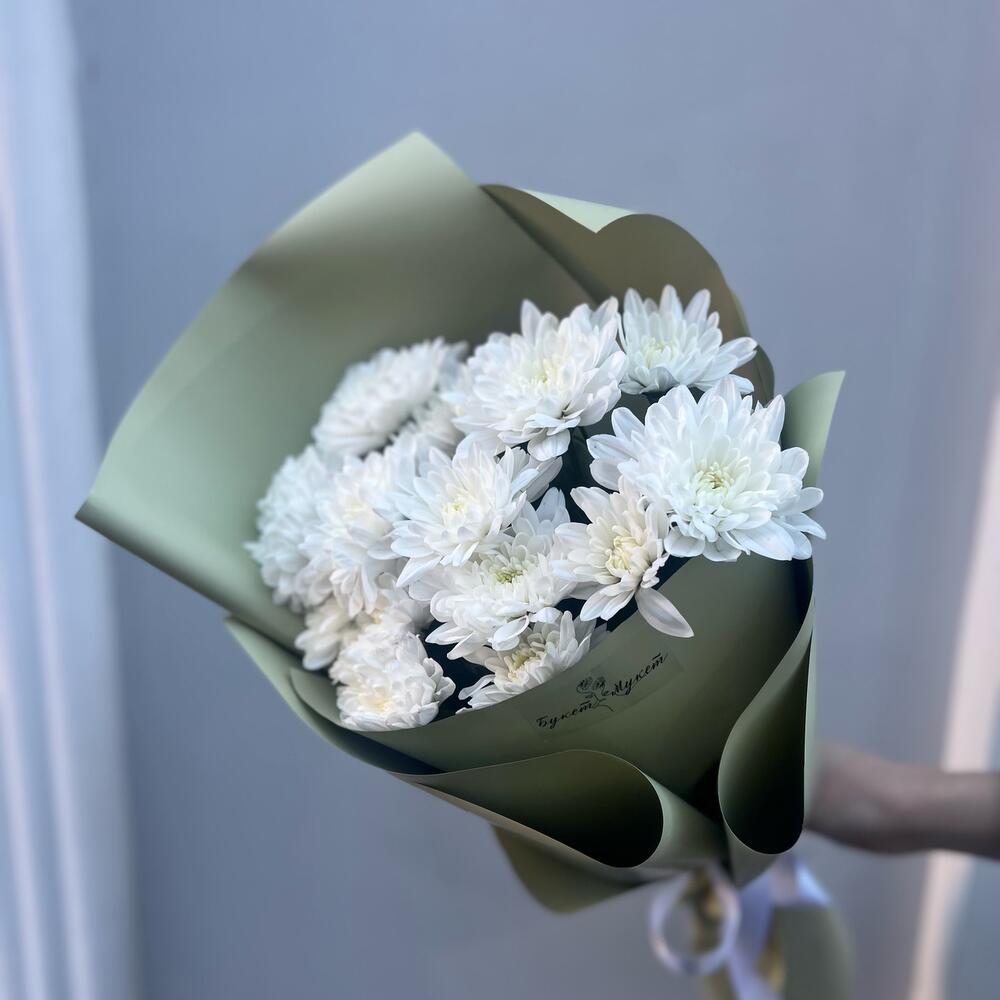 Объемный букет с очаровательными белыми хризантемами!В зависимости от сезонности цветов, мы можем немного изменить состав букета, сохраняя гамму и настроение композиции.Так как все цветы индивидуальны, как люди, букеты с одним и тем же составом тоже могут немного отличаться, но мы стараемся максимально приблизиться к картинке. Мы — очень творческая команда и хотим все силы бросить на создание хороших букетов для вас, поэтому ответственность за доставку мы полностью передали в руки команды FlowWow. Поэтому мы только подготавливаем ваши заказы и фотографируем их для вас перед доставкой, а курьеров назначает и контролирует сам агрегатор. Будем благодарны за оценку именно нашей работы, качество композиции и цветка!