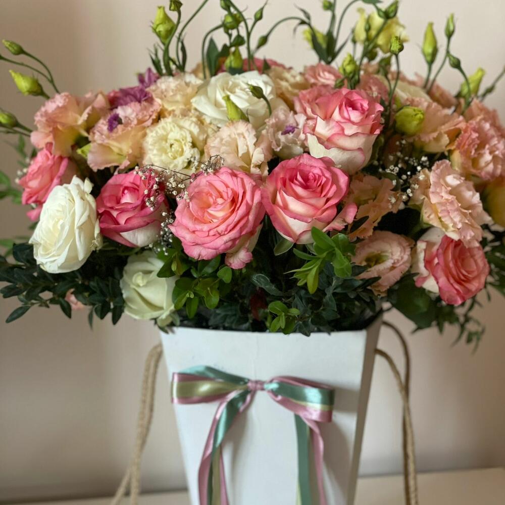 Кустовые розы, Лизиантусы, Пионы, Розы, Хризантемы