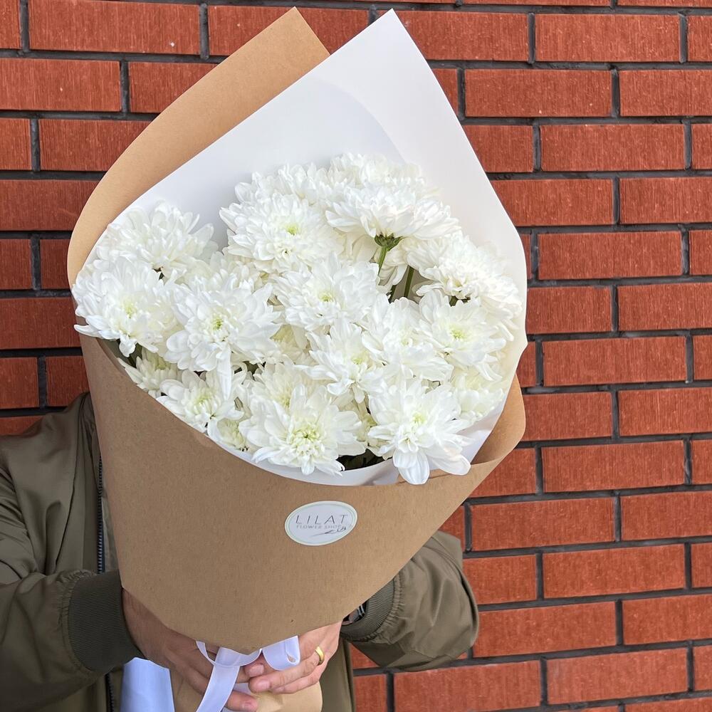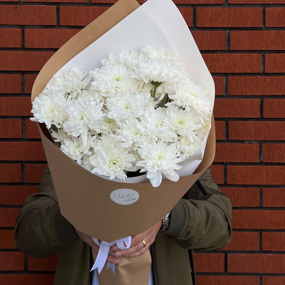 Букет из хризантемы Густав, маттиол, пионовидных роз