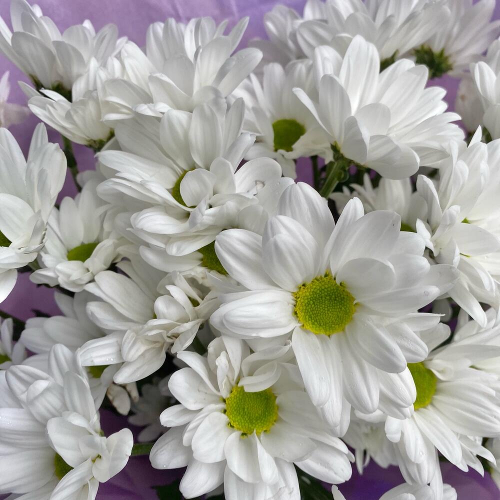 Лента атласная – 1 шт.Упаковка дизайнерская – 1 шт.хризантема кустовая чик – 5 шт.