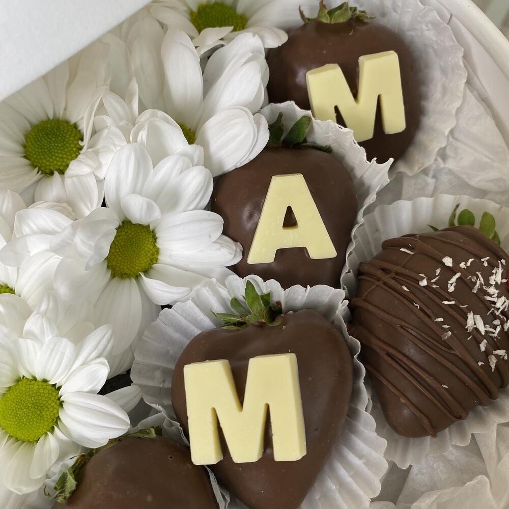 Подарочный набор “Маме” хризантема и клубника в молочном шоколаде