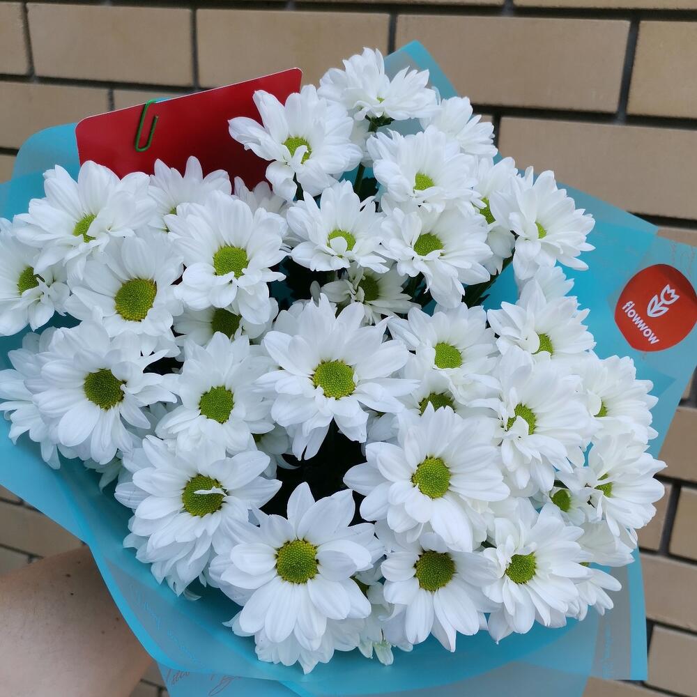 Хризантема кустовая – 7 шт. Лента атласная – 1 шт. Упаковка дизайнерская – 2 шт.