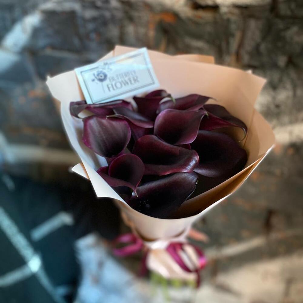 Букет из 11 черничных калл в упаковке "Лора"
