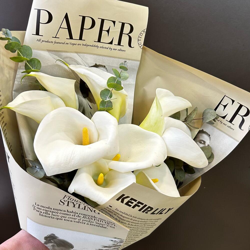 Букет из белой каллы и ароматного эвкалипта в упаковке