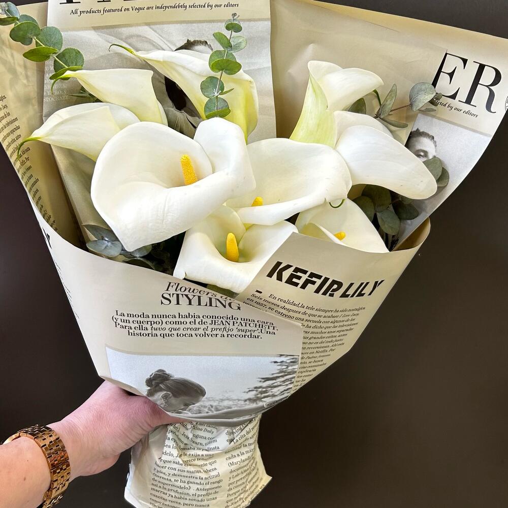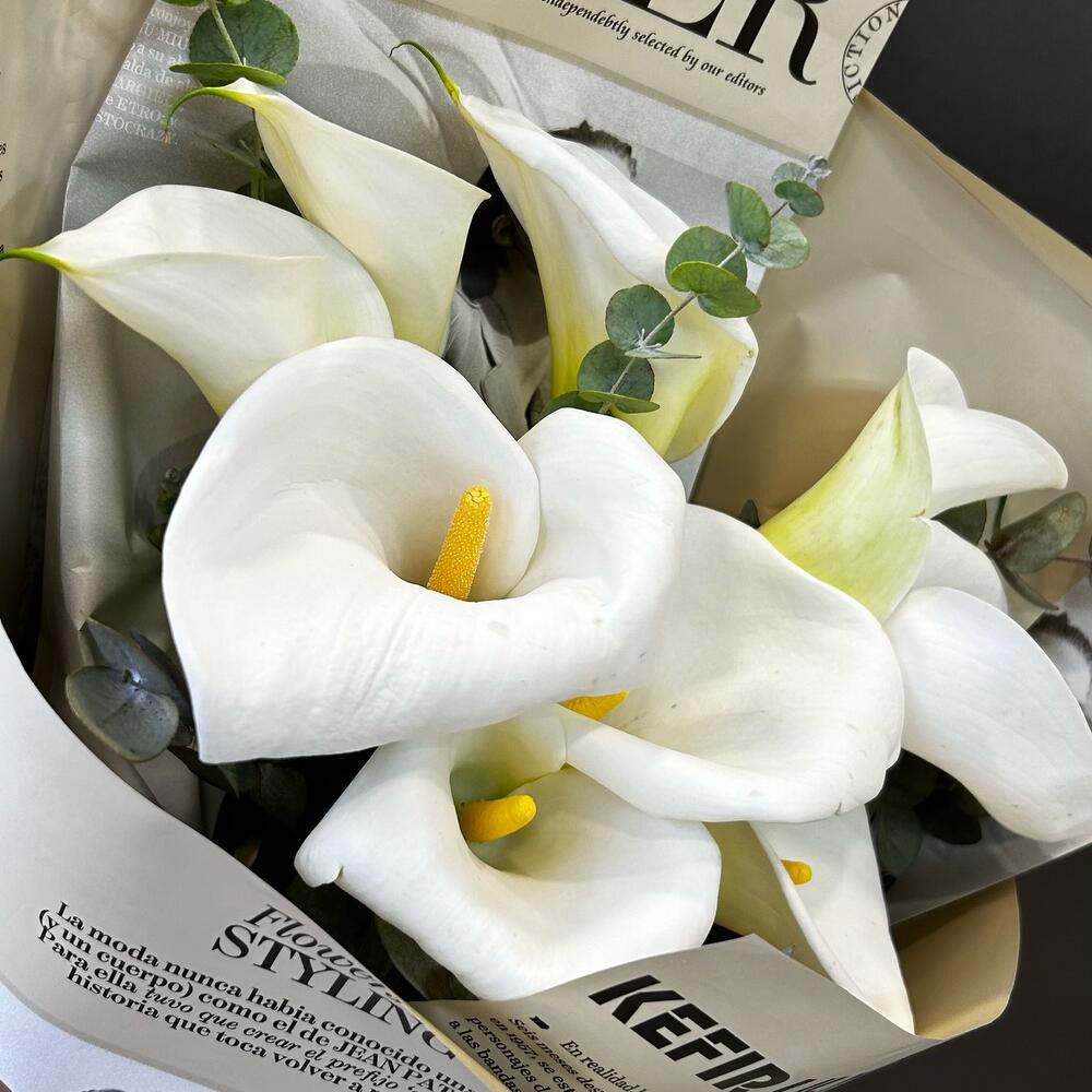 Калла – 9 шт.Зелень – 2 шт.Упаковка дизайнерская – 2 шт.