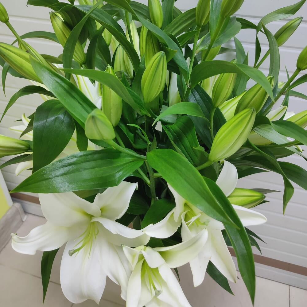 лилия белая ориентальная – 9 шт.Лента атласная – 1 шт.