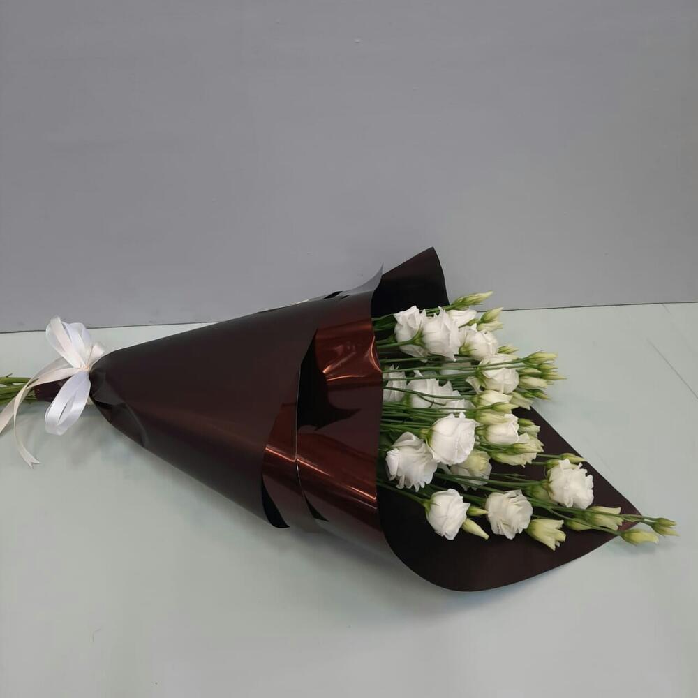 эустома белая – 5 шт.Упаковка дизайнерская – 1 шт.Лента атласная – 1 шт.