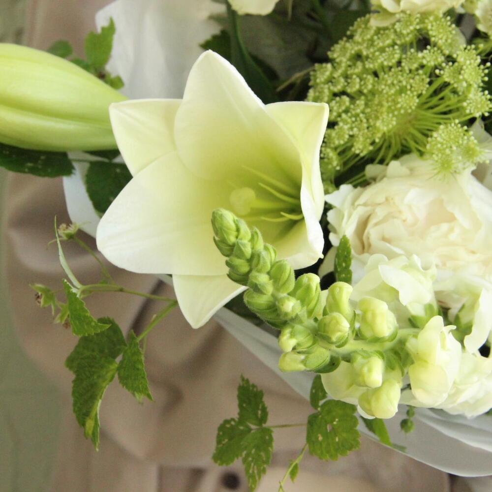 Лилия лонги – 2 шт.Амми – 3 шт.Лизиантус – 3 шт.Львиный зев – 3 шт.Ветки малины – 4 шт.Фисташка – 2 шт.Астранция – 2 шт.Упаковка – 1 шт.Лента атласная – 1 шт.Пион – 2 шт.