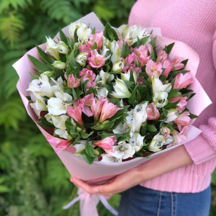 БУКЕТ ИЗ БЕЛЫХ И НЕЖНО-РОЗОВЫХ АЛЬСТРОМЕРИЙ
