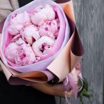 пионы сара бернард – 7 шт.Упаковка дизайнерская – 3 шт.Лента – 2 шт.
