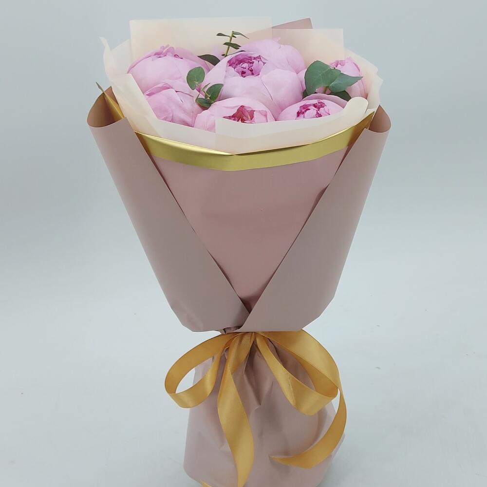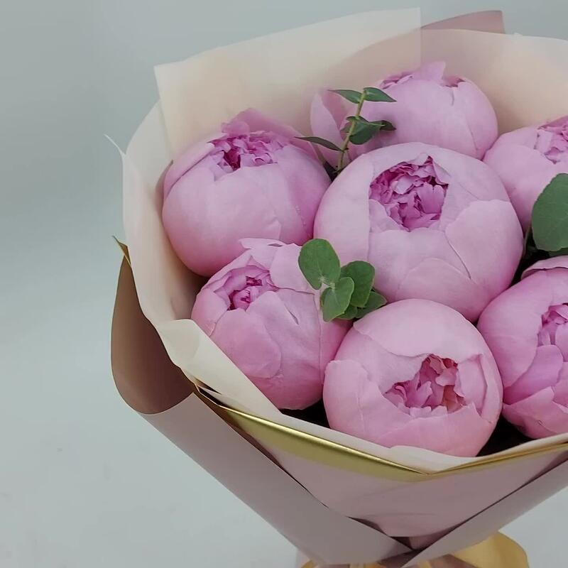 7 пионов с эвкалиптом