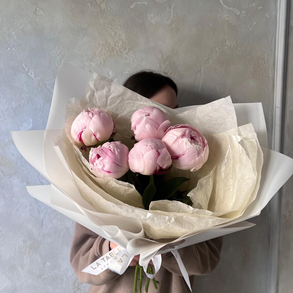 Букет из розовых пионов 5шт