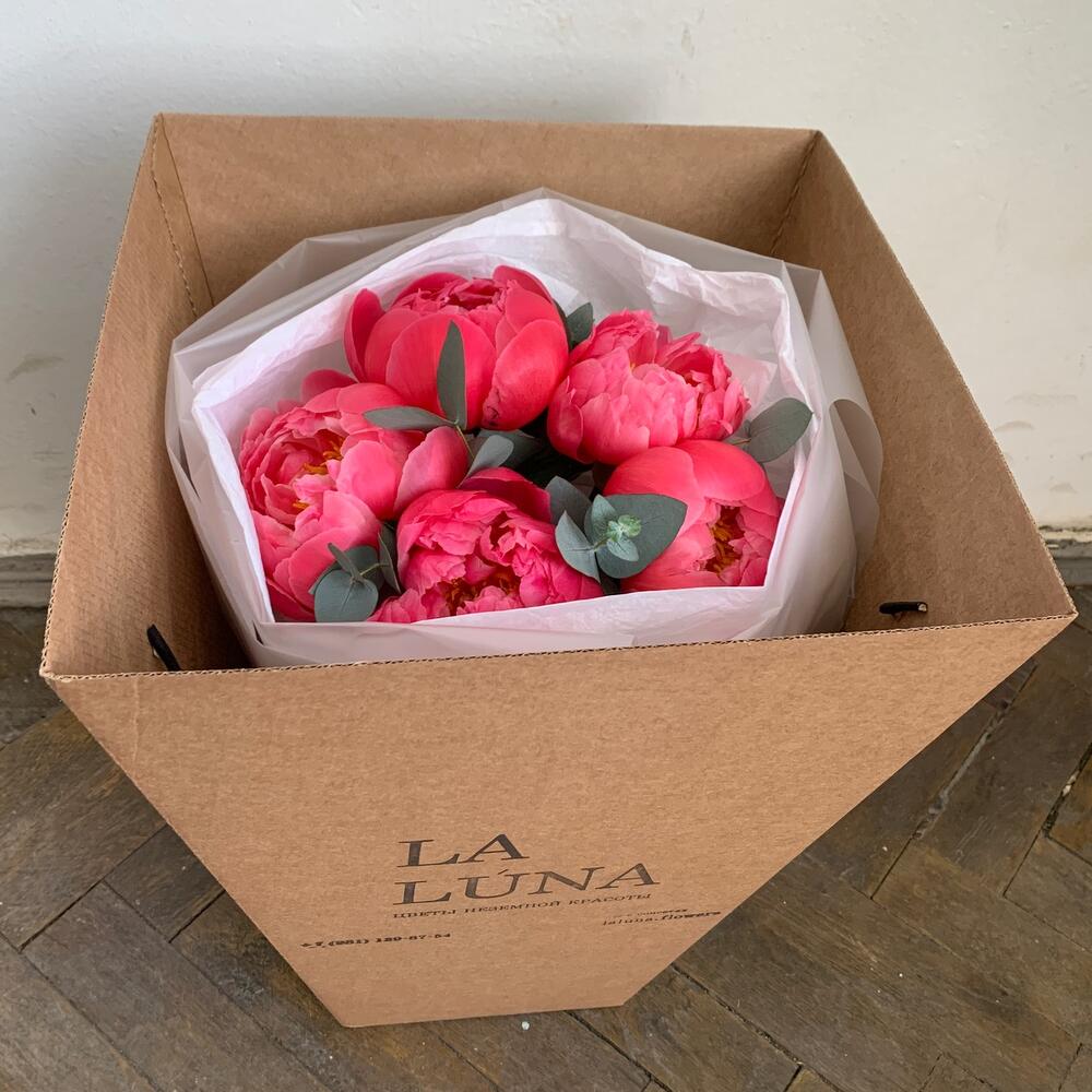 Монобукет из 5 коралловых пионов
