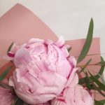 Эвкалипт – 1 шт.Лента атласная – 2 шт.Пион Сара Бернар – 5 шт.Калька упаковка – 1 шт.