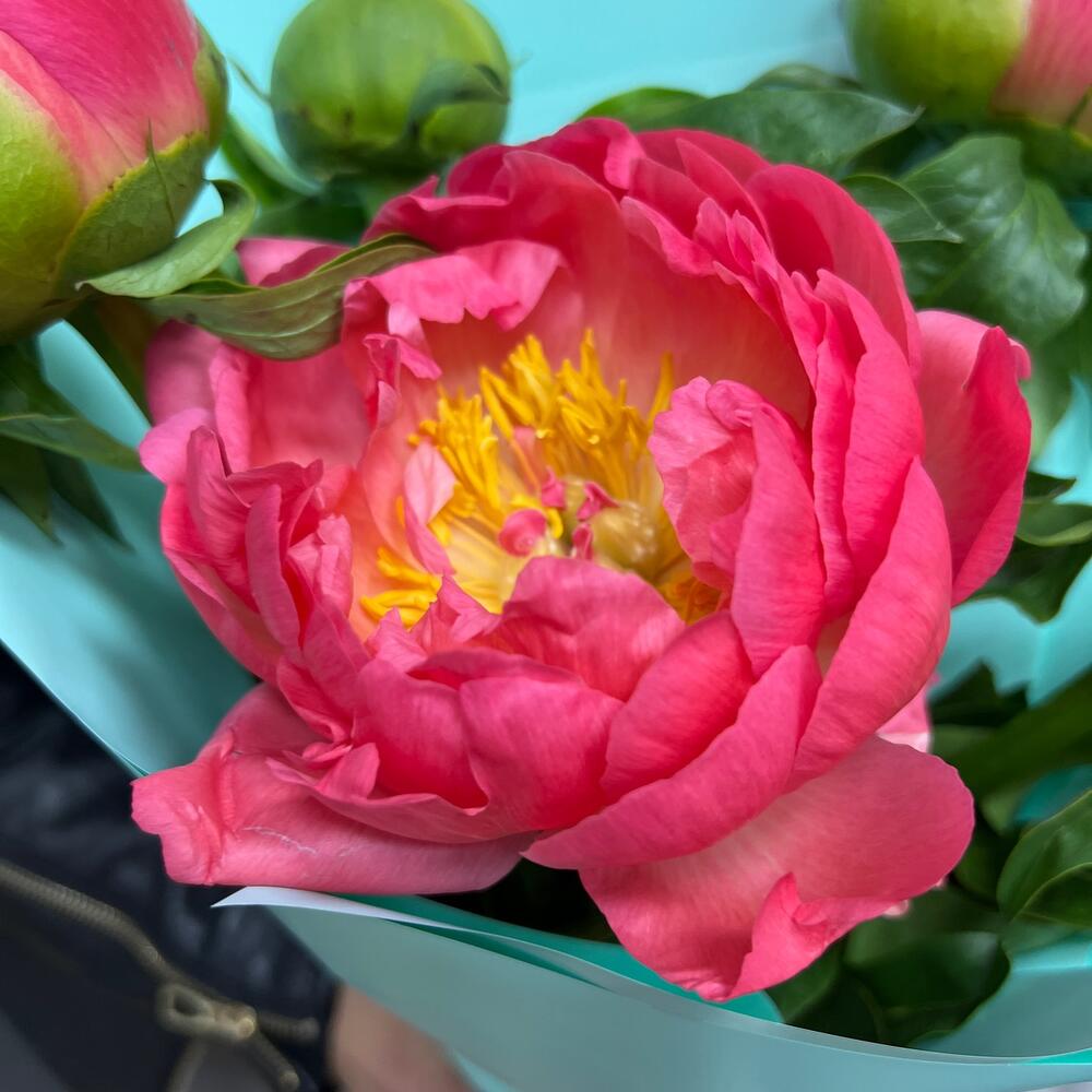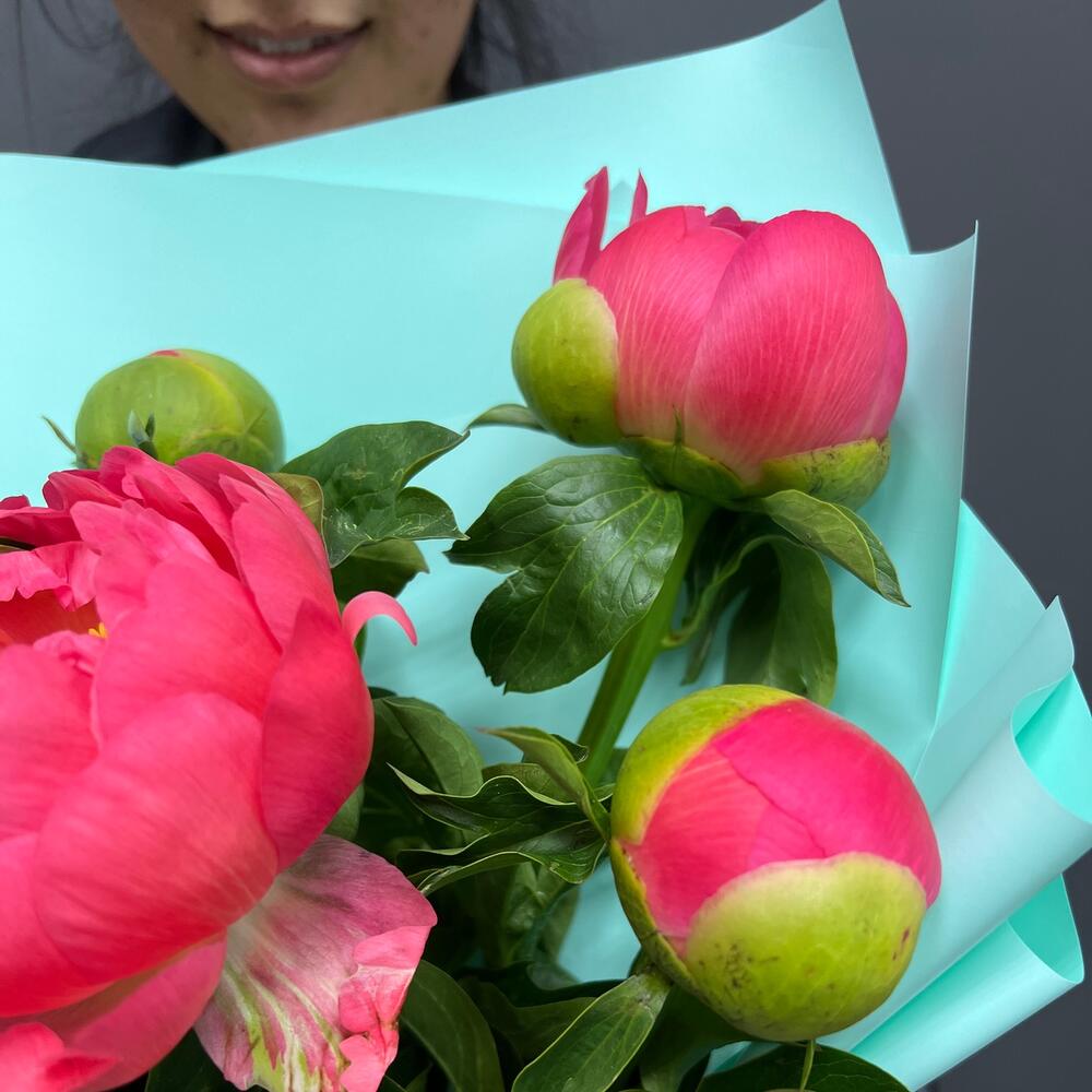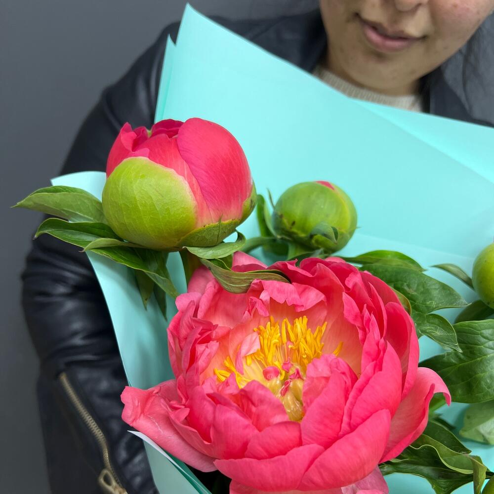 Пионы Коралл шарм в дизайнерской упаковке