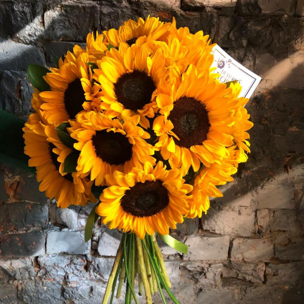 Букет из 17 подсолнухов и рускуса “Роджер Янг”