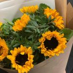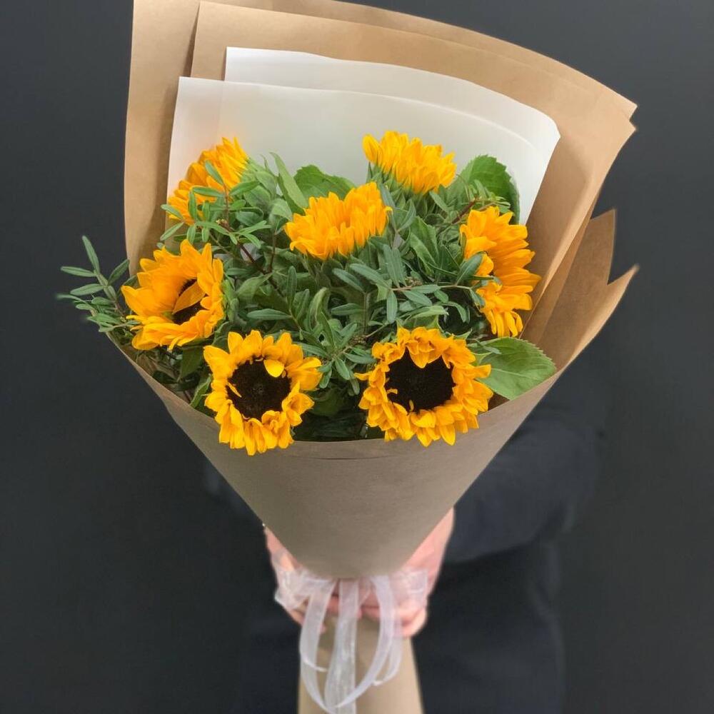 Букет из 19 подсолнухов в стильной упаковке "Абрасакс"