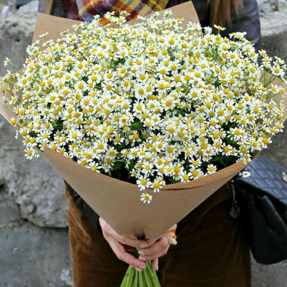 Букет 22: кустовые ромашки в жатом крафте