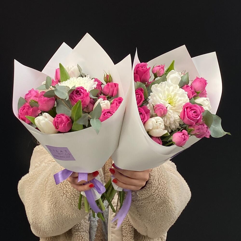 Категорий: Кустовые розы, Розы, Тюльпаны, Хризантемы, Хризантемы кустовые, Эвкалипт