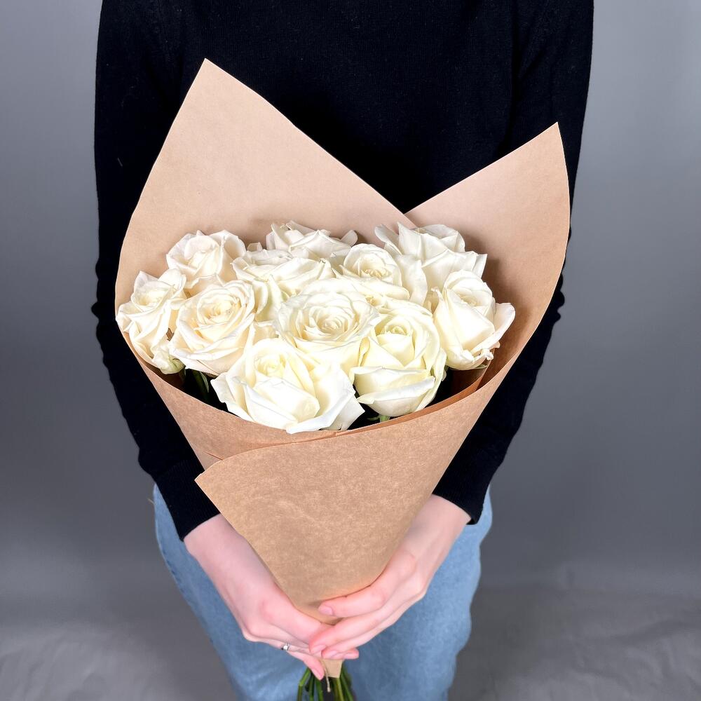 Роза белая россия – 11 шт.Дизайнерская упаковка – 1 шт.