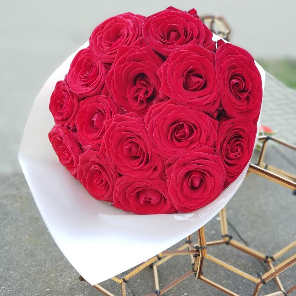 15 больших свежих красных роз