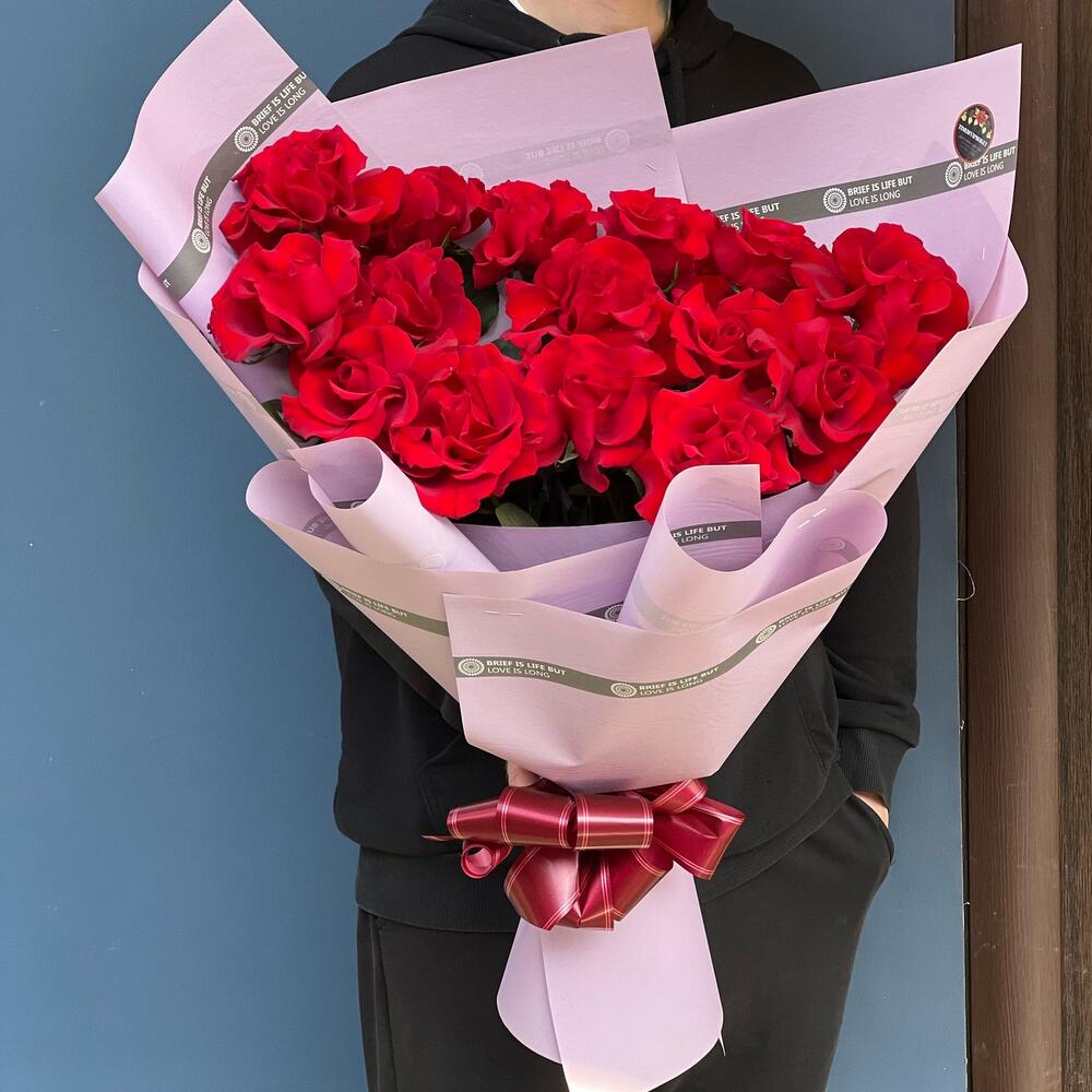 Роскошные ароматные красные розы в стильном оформлении порадуют ваших близких по любому поводу