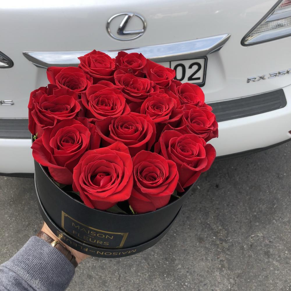 Стильная фирменная Коробочка из 15 Красных роз. Классический вариант подарка на любой повод.